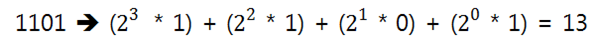 - 2진수→10진수 : 뒤에서부터 차례대로 2^0, 2^1, 2^2...을 곱해서 더해준다.
