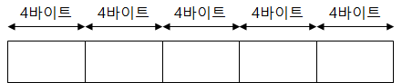 - 배열을 선언하면 자료형에 해당하는 변수가 지정한 개수만큼 생성되는데, int형 배열 5개를 선언하면 int형 4바이트 * 5가 되어 총 20바이트가 메모리에 할당된다.